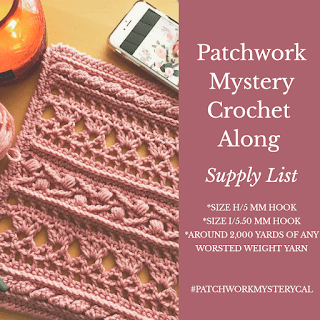 I am happy to announce that I am back from my hiatus and excited to announce I am one of 12 designers participating in the Patchwork Mystery Crochet Along!